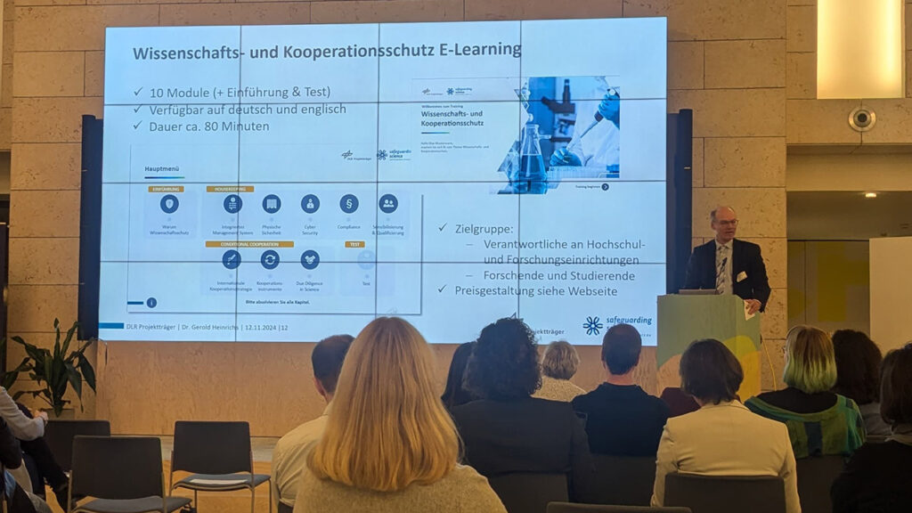 Beim vierten internationalen Helmholtz-Workshop für Forschungssicherheit haben wir unser neues E-Learning zu Wissenschafts- und Kooperationsschutz präsentiert. Das Online-Tool stieß bei den Teilnehmenden aus 15 Ländern auf großes Interesse. Mit dem konkreten Unterstützungsangebot tragen wir dazu bei, Forschende in internationalen Kooperationen für das Thema Forschungssicherheit zu sensibilisieren.